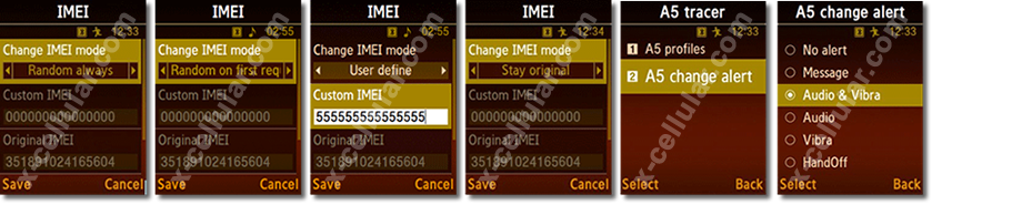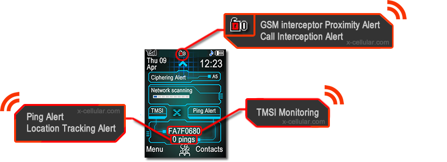 All changes of above identifiers and parameters are instantly detected by XCell Stealth Phones, which will warn you every time when such intrusion attempts are in progress.