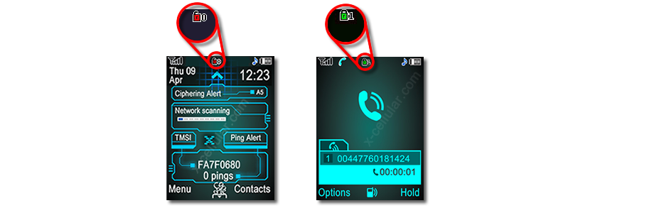 (open lock) in case of monitoring by GSM Interceptor- Call Interception Alert. During the call, the phone will display an icon